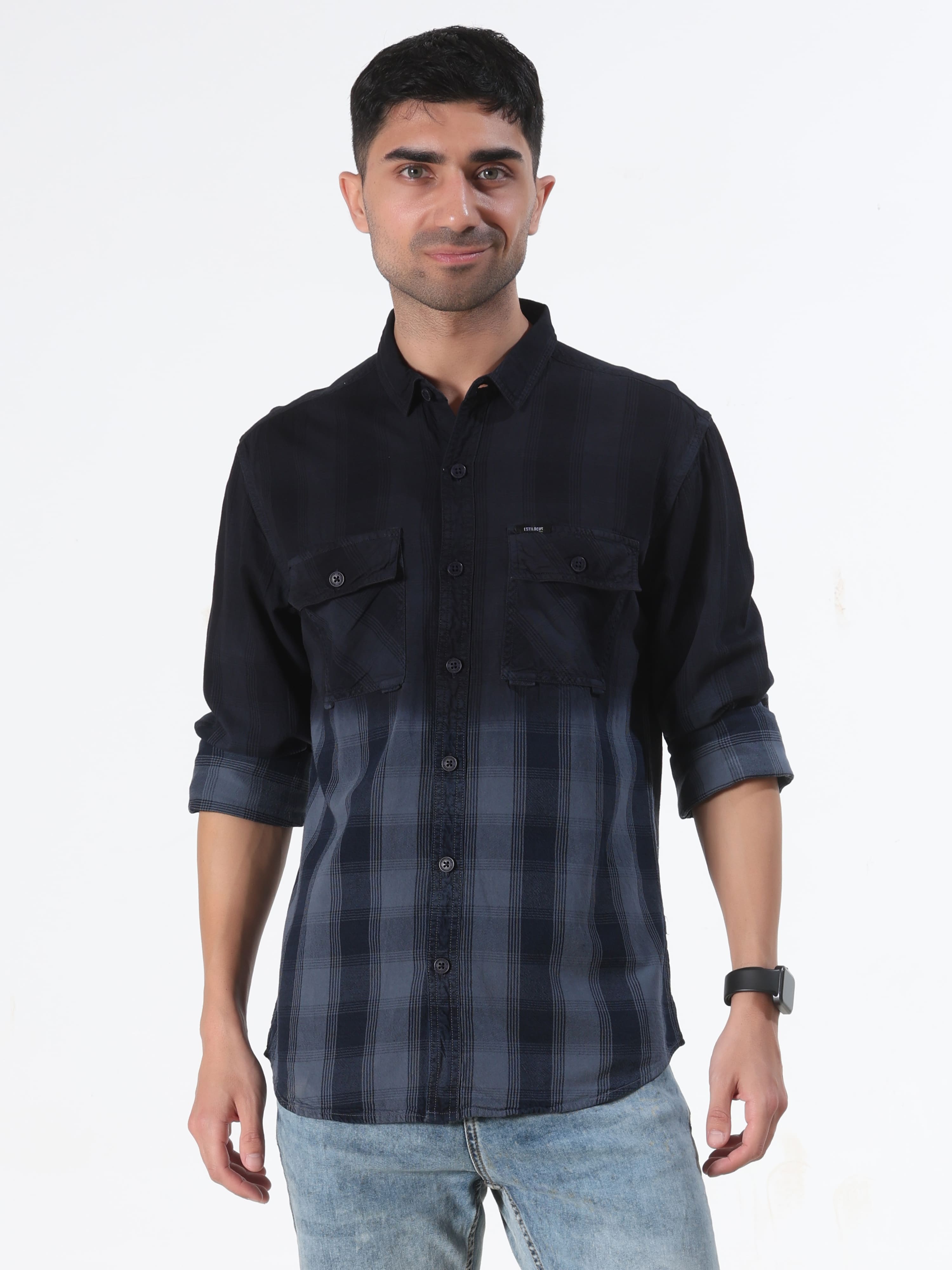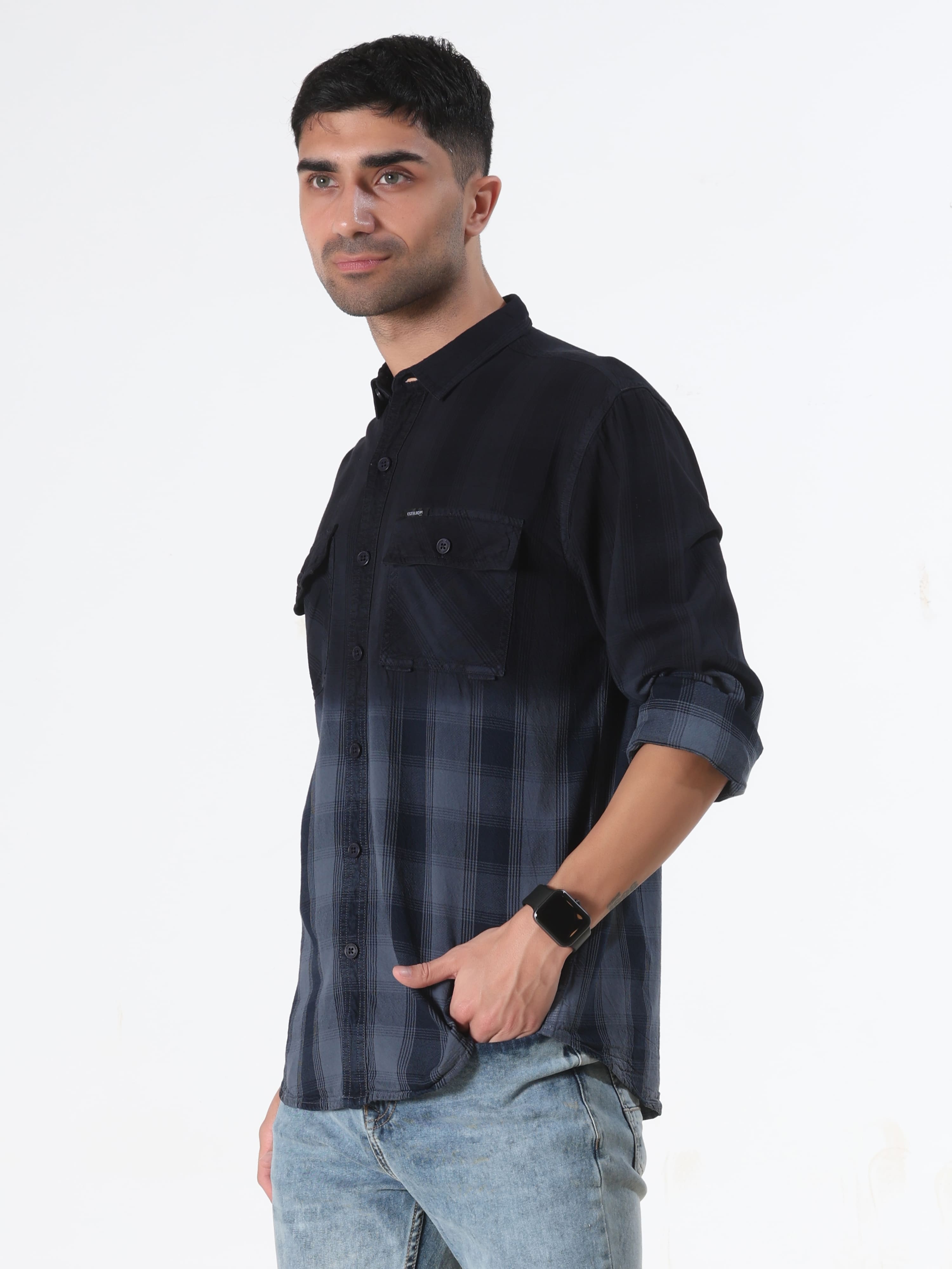 Made from 100% cotton, this Grey full-sleeve checks shirt blends timeless style with comfort.