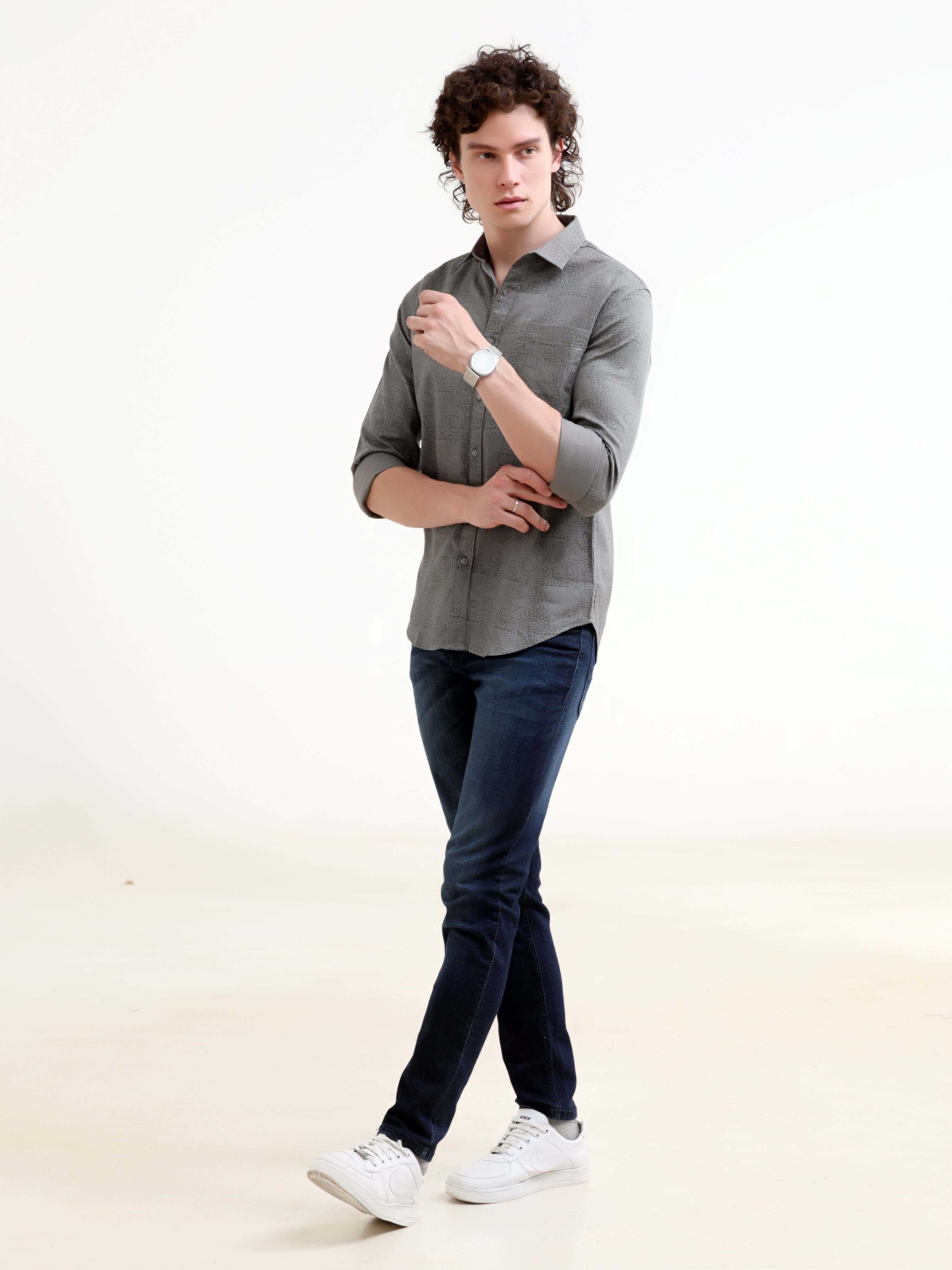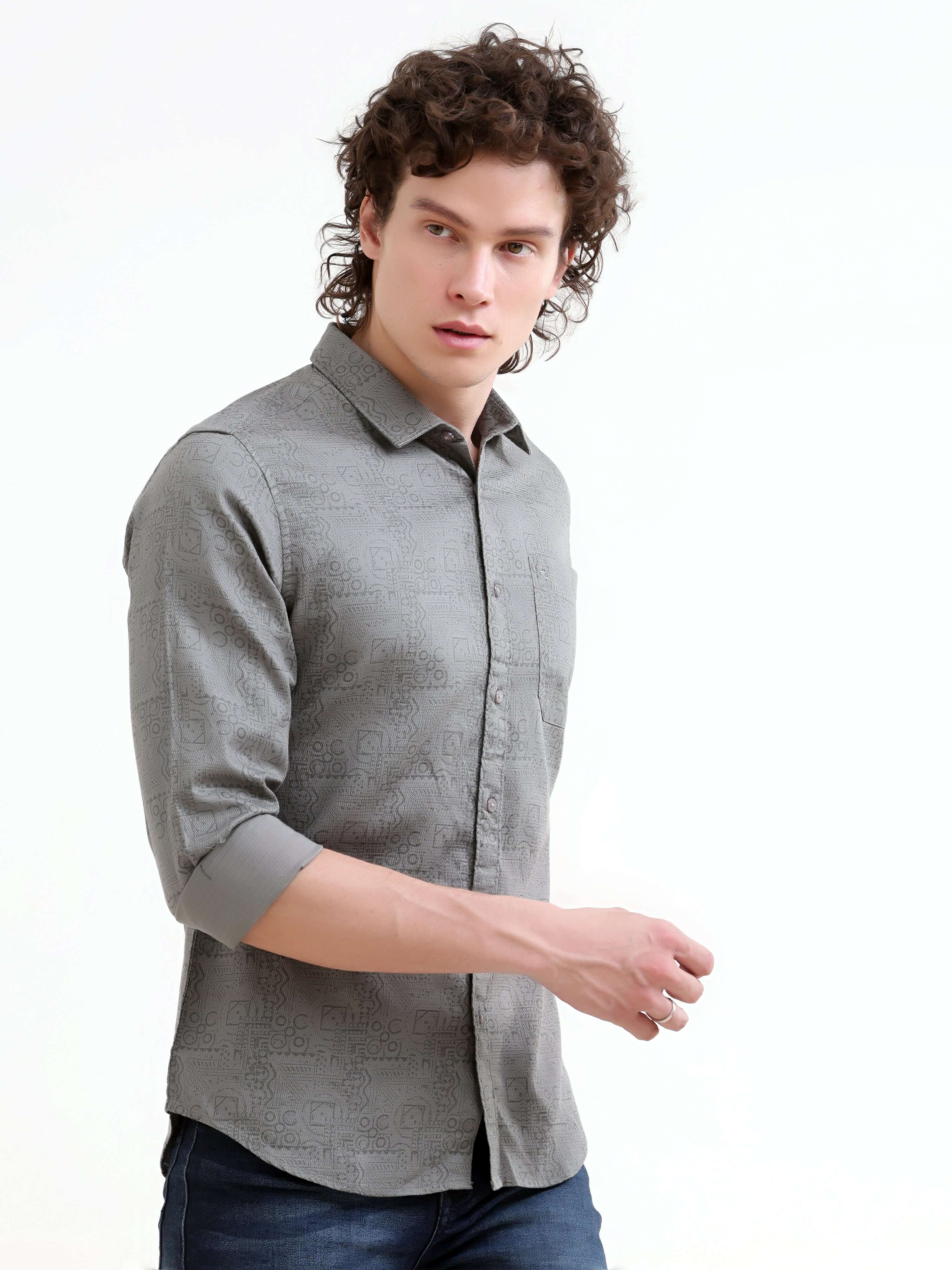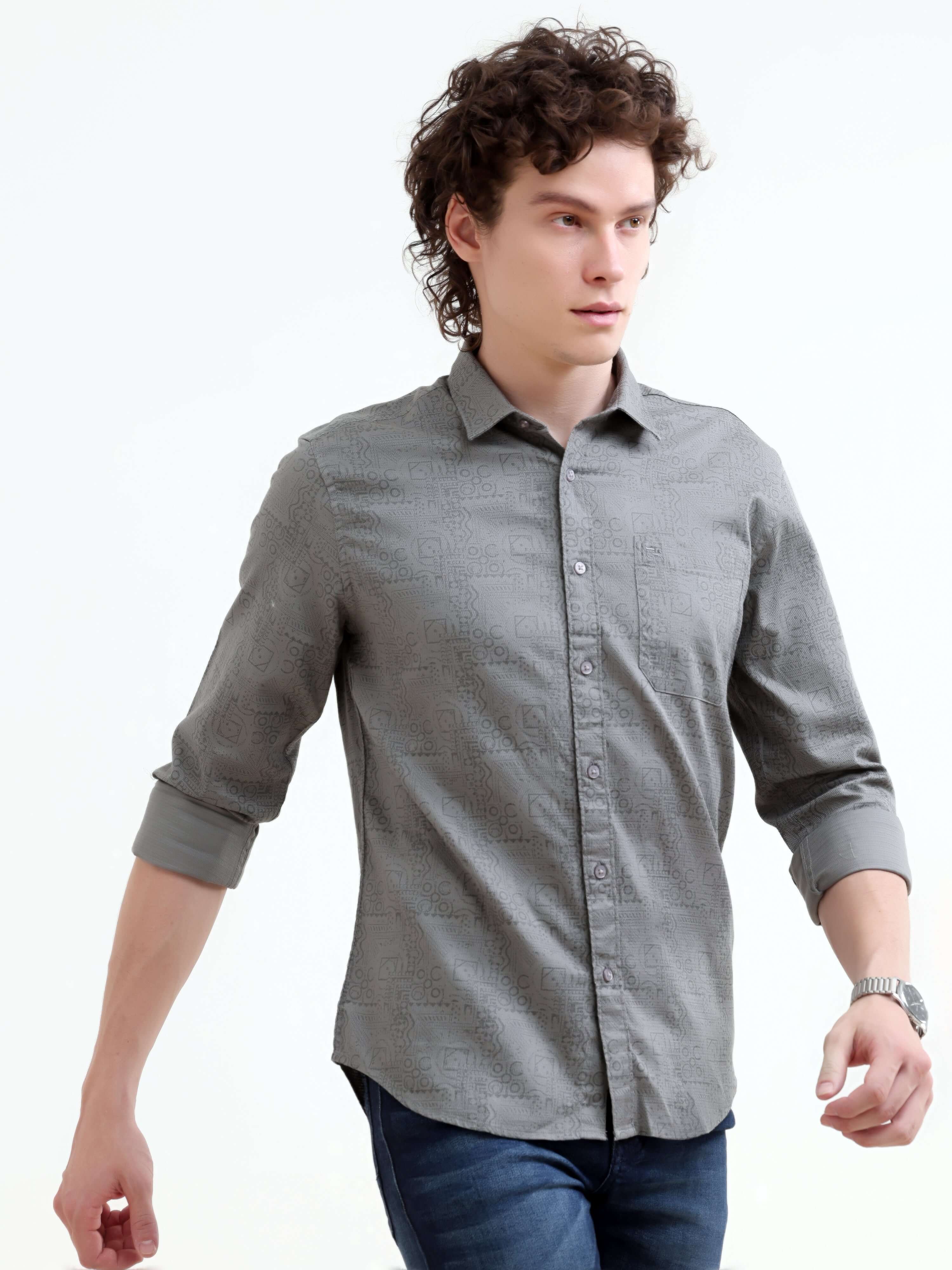 Misty Garden Printed Dark Grey Shirt