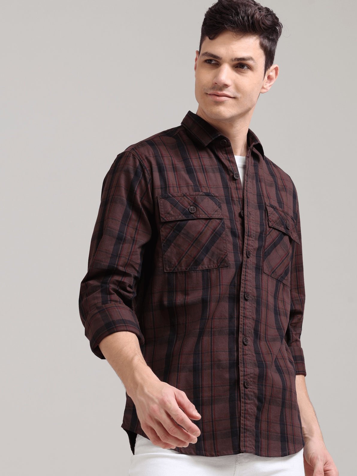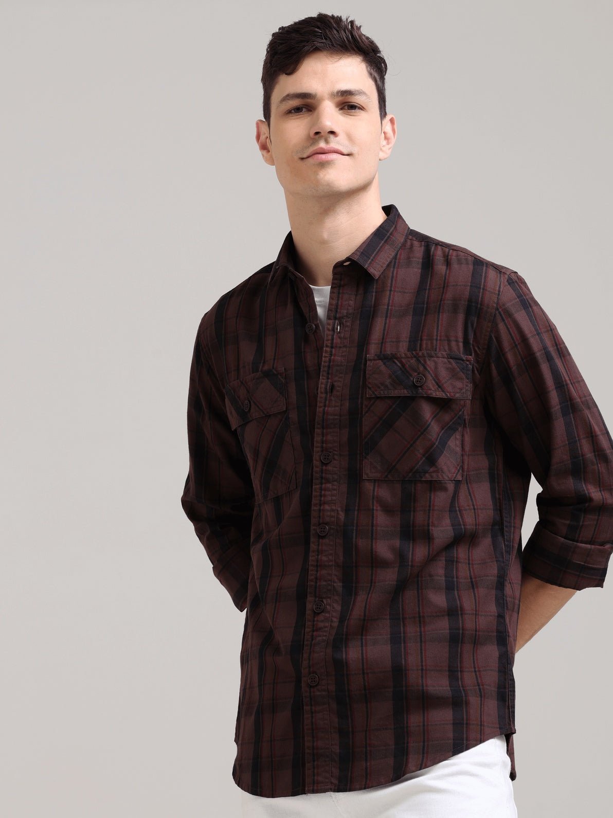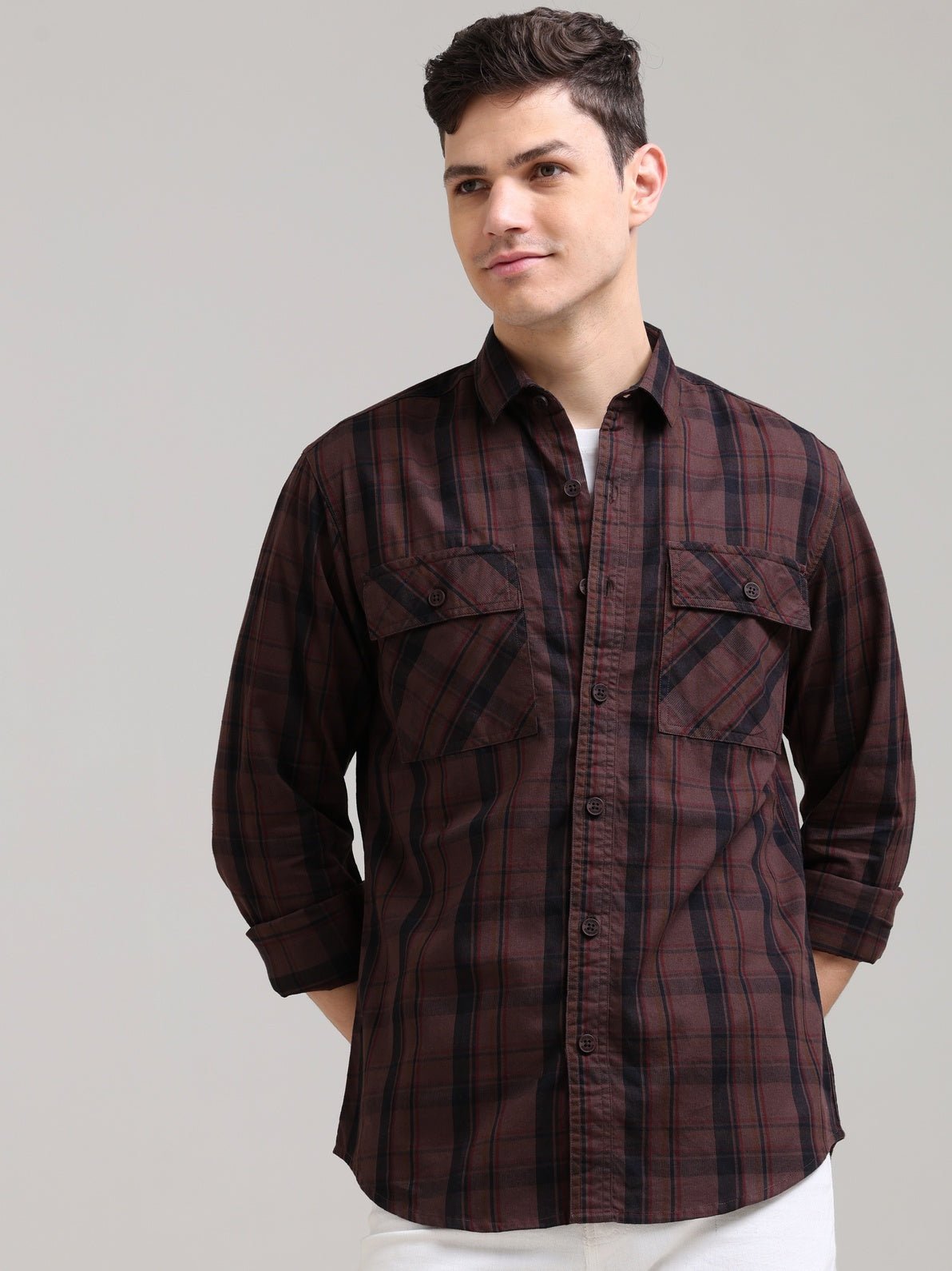 Dusky Carnelian Chocolate Semi Corduroy Shirt