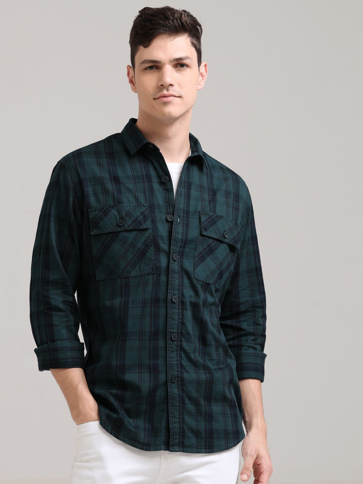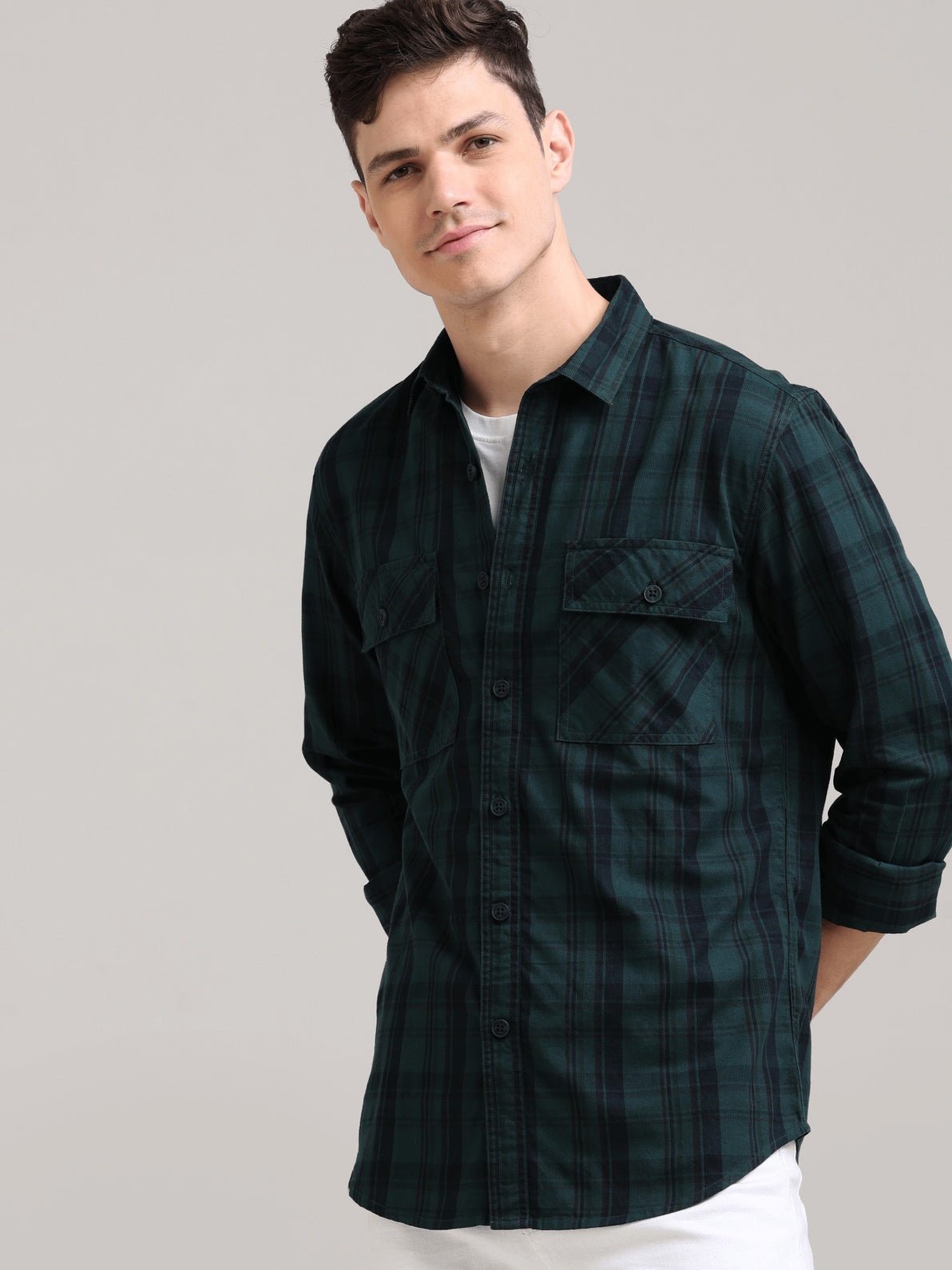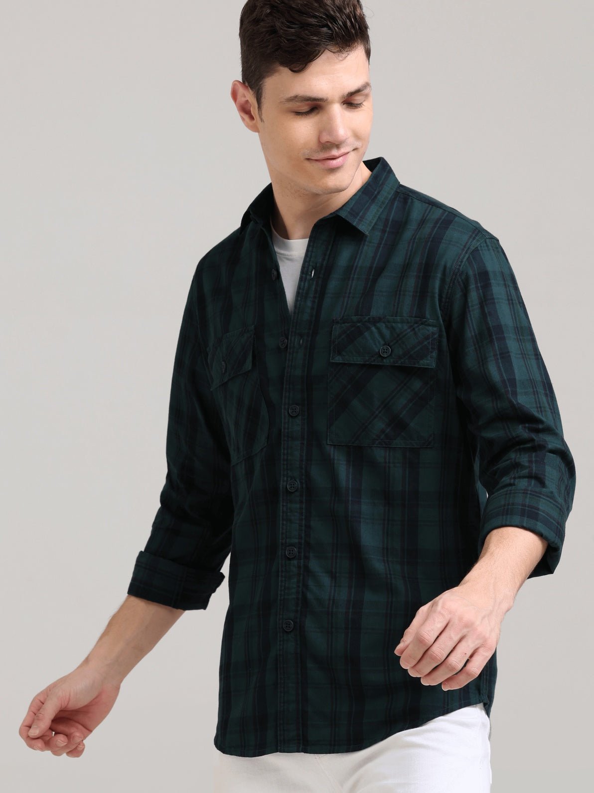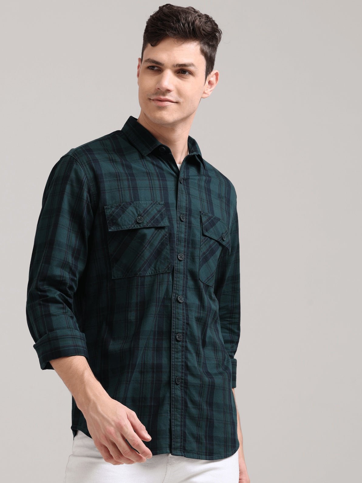 Made from 100% cotton, this Green full-sleeve checks shirt blends timeless style with comfort.