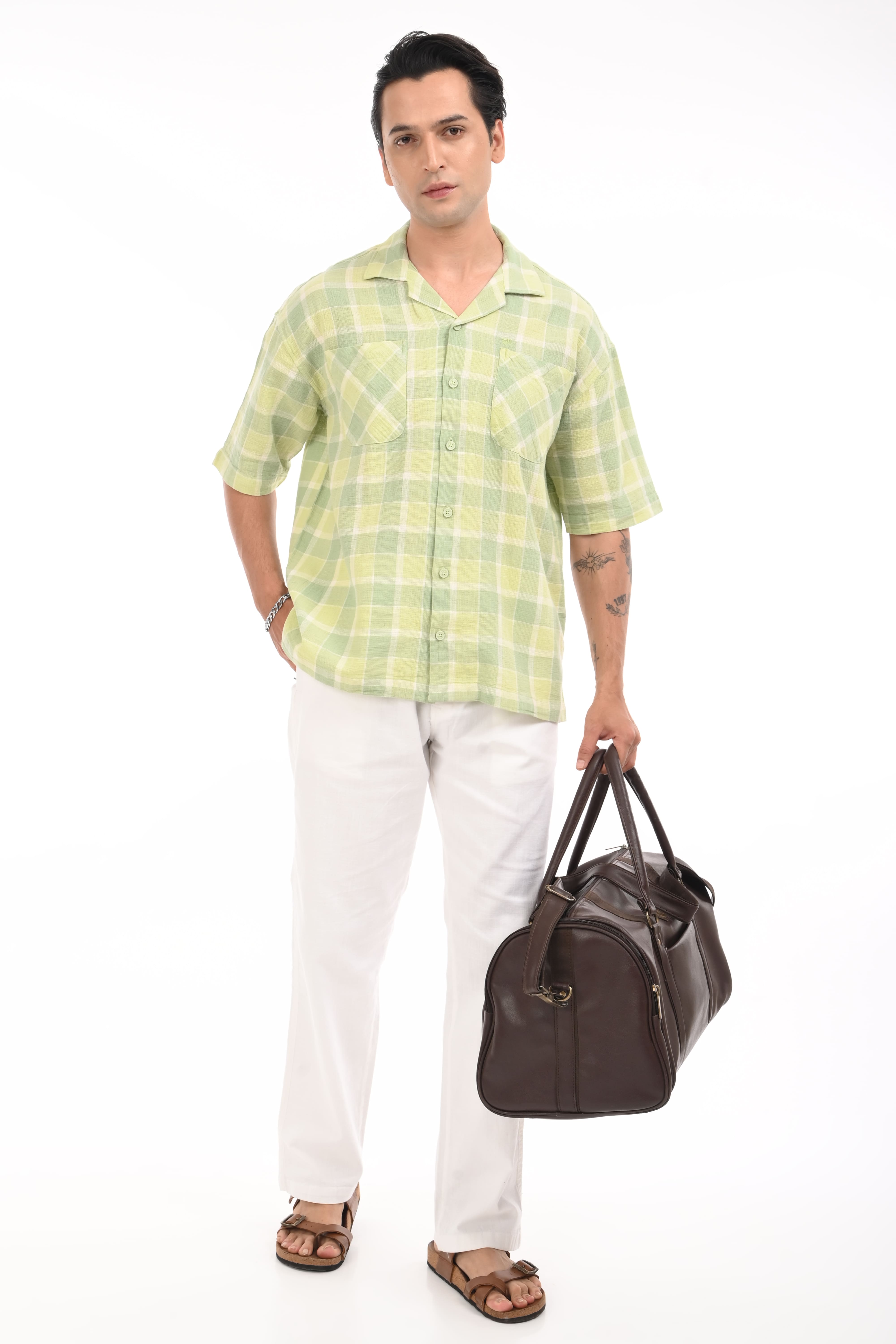 Crafted in pure cotton, this oversized shirt is built for those who appreciate both style & comfort and for days when the ordinary just won’t do. Its breathable fabric and relaxed fit make it a perfect choice to be worn in any season, carrying you effortlessly from sunlit afternoons to breezy evenings. Oversized fit drapes with ease, while the drop shoulders add that touch of relaxed rebellion. The Cuban collar whispers vintage charm, balanced by the modern edge with double pockets without flaps - a look that is clean, sharp, and never trying too hard. An embroidered Estilocus logo rests subtly on the chest — a mark of craft & quality, not noise.