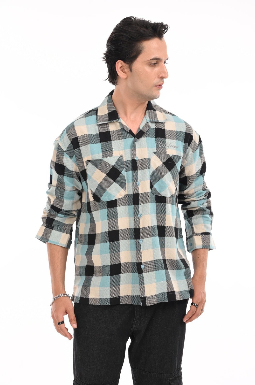 Designed for sophistication and built to move, this full-sleeved shirt blends clean aesthetics with effortless comfort. The drop shoulders create a relaxed silhouette, while dual pockets add function without fuss. The embossed Estilocus logo makes its mark — subtle, yet distinct. Crafted for versatility, this piece transitions seamlessly from laid-back days to elevated evenings. It's not just a shirt — it's a statement in motion.