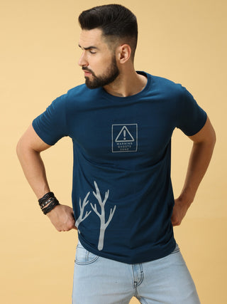 Warning Ghosts Zone Grey Print Crew Neck T-Shirt