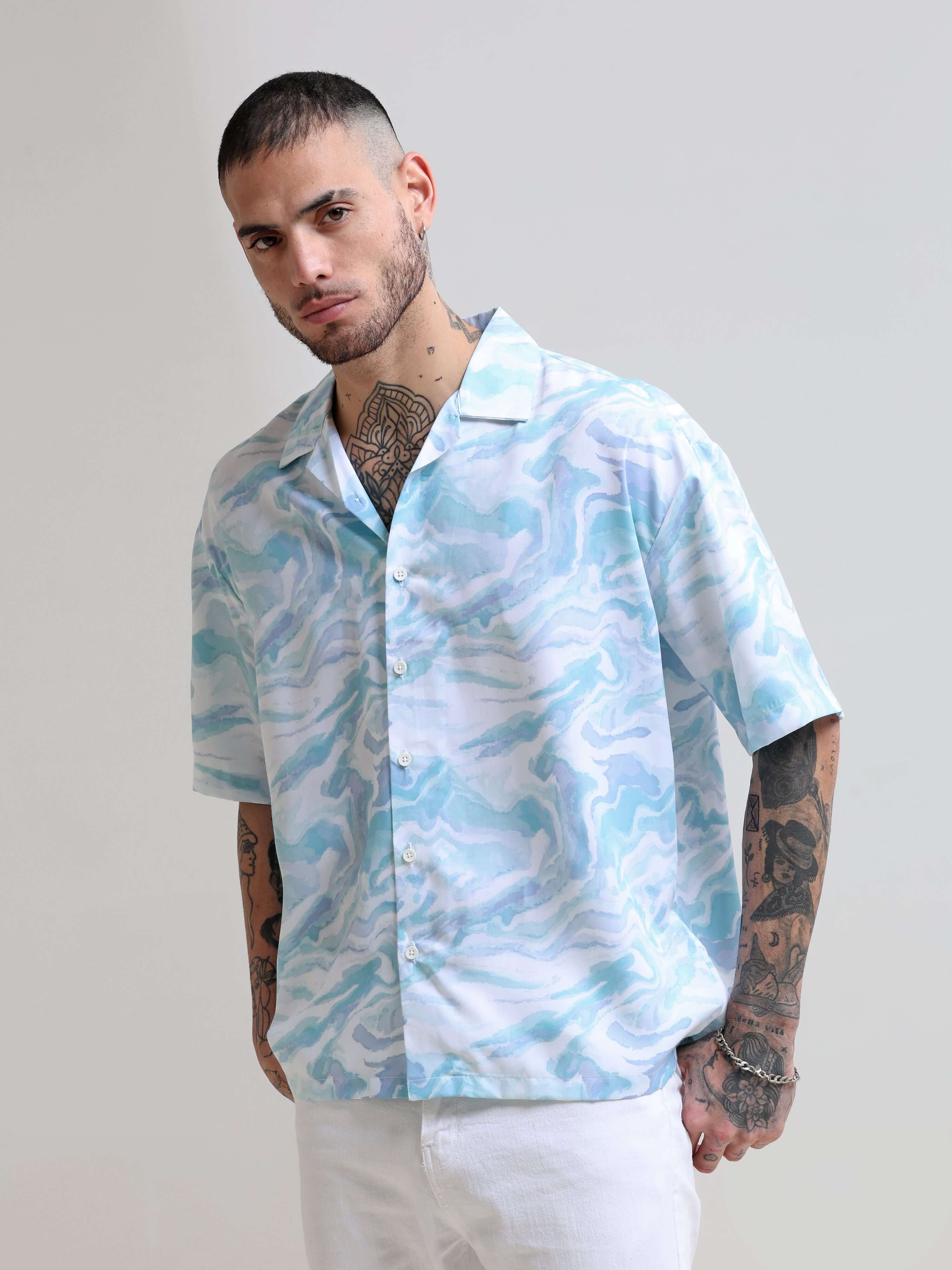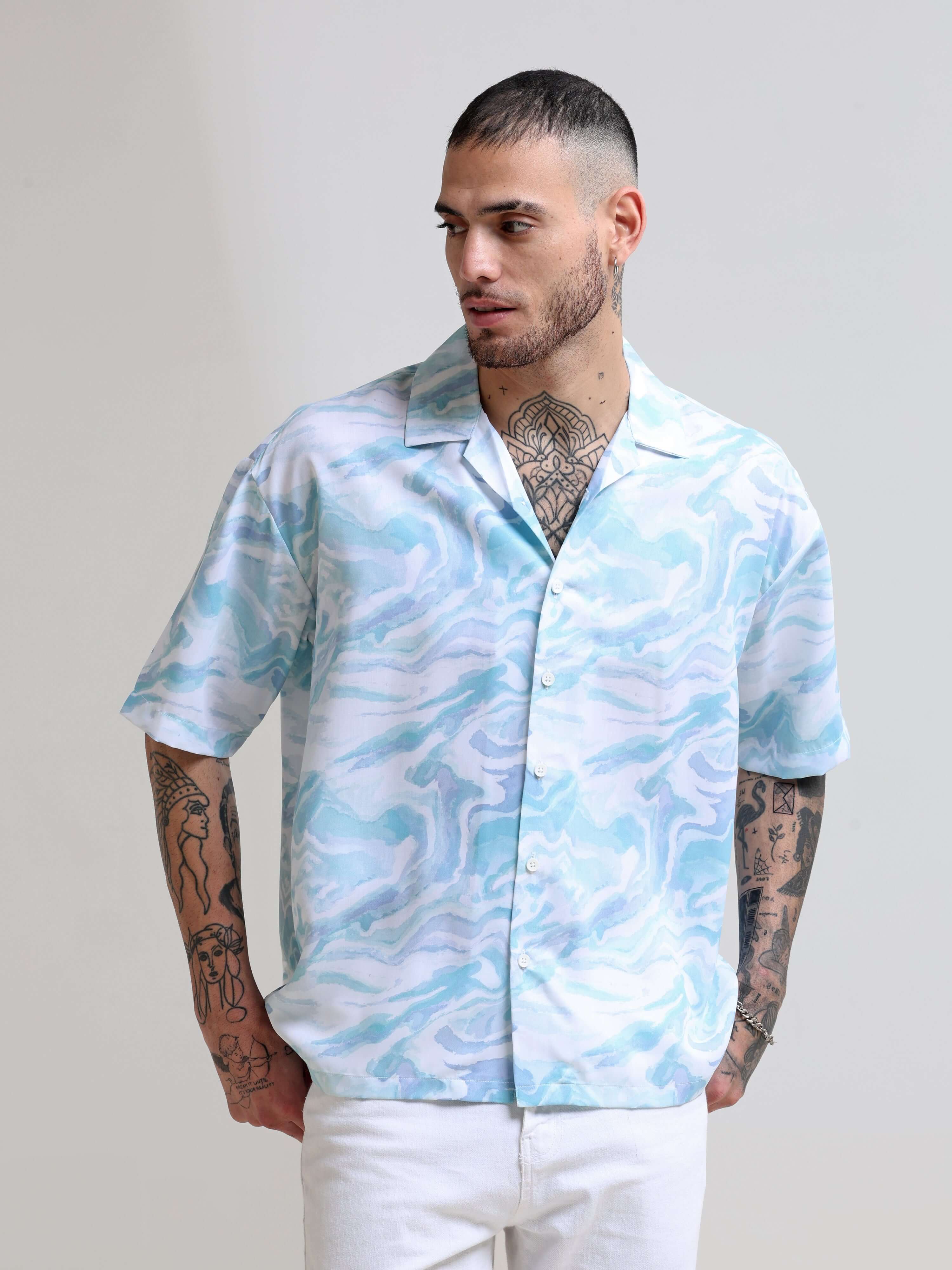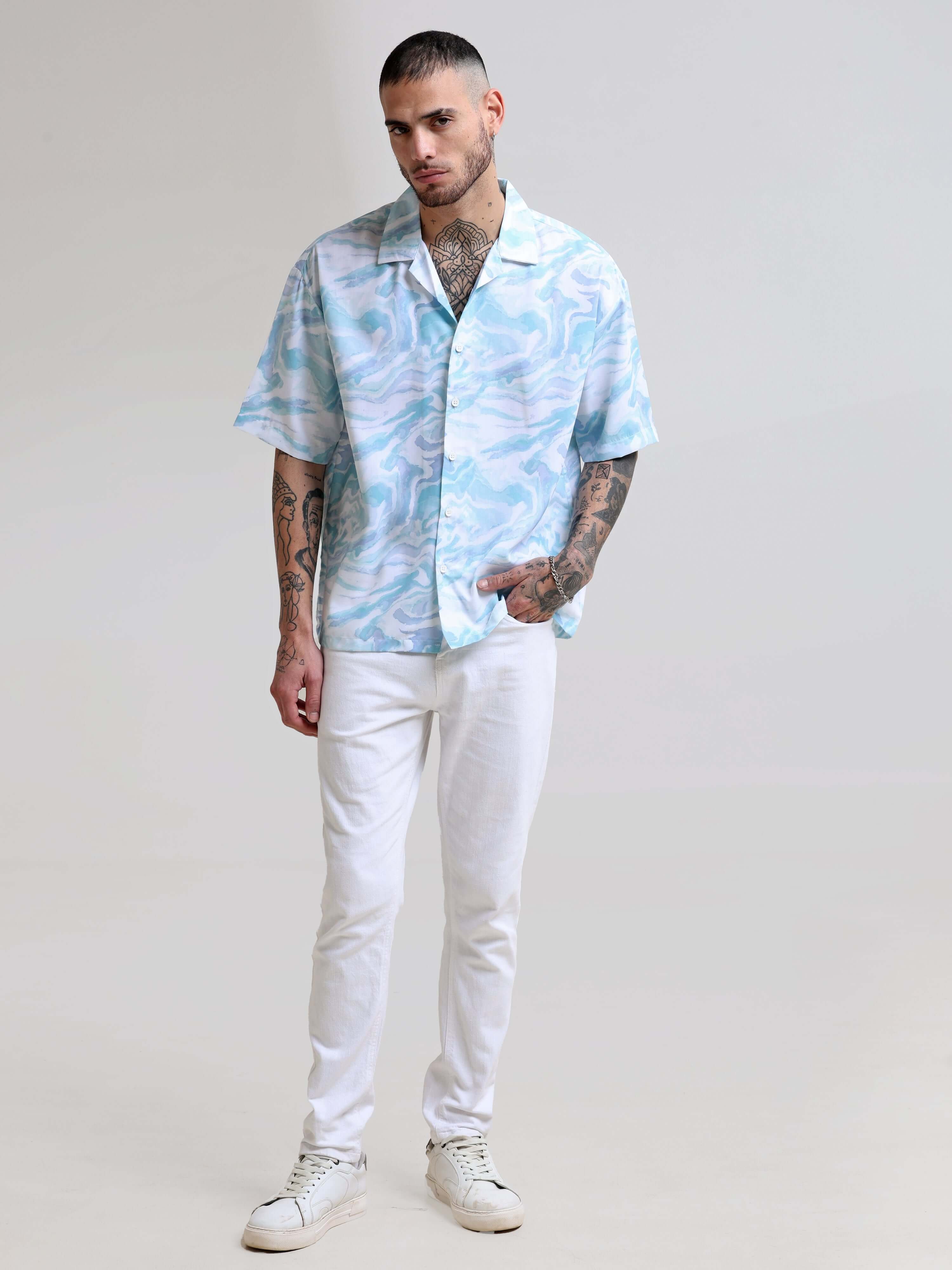 Marble Wave Blue Oversized Shirt