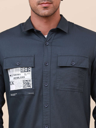 Navy Solid Double Pocket Shirt
